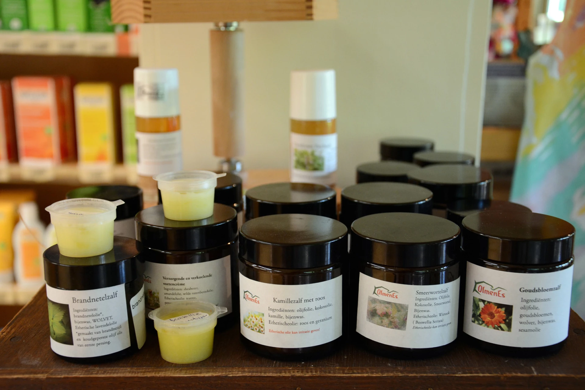 In de winkel van OlmenEs vindt u een unieke selectie van handgemaakte producten, gemaakt door onze bewoners. Van verse kaas uit onze kaasmakerij tot handgeweven textiel en vilt uit onze weverij. Wij bieden ook zelfgebakken brood, taarten, en koekjes uit onze bakkerij. Daarnaast verkopen we seizoensgebonden biologische groenten en natuurlijke bad- en doucheproducten gemaakt van zelf geteelde kruiden. Daarnaast biedt de winkel ruimte aan een klein aanbod natuurvoedingsproducten.